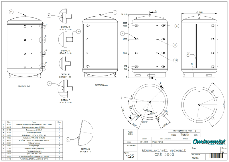 Centrometal CAS- 5003 HV fűtési és hűtési puffer tartály (5022 liter)