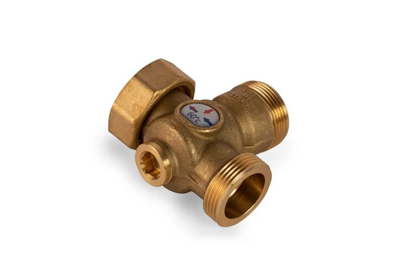 60°C-os hőmérséklet visszaemelő szelep, 5/4"-os külső menetes csatlakozással (szelep DN25, csatlakozási menet méret DN32), szilárd tüzelésű kazánokhoz. Feladata a szilárd tüzelésű kazánok esetén a kazán védelme a kondenzációs páralecsapódás kialakulása ellen.