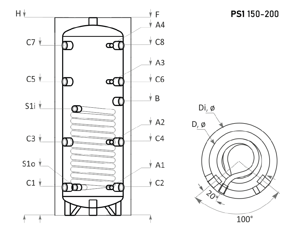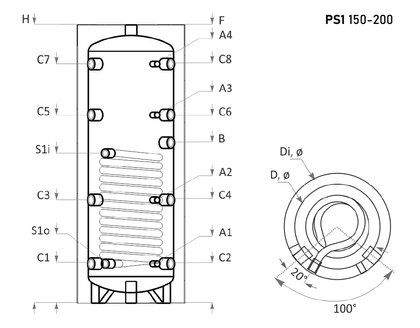 A 149 liter űrtartalmú tartálytestbe épített 1,1 m2-es hőátadó felülettel (űrtartalom - 6,8 liter) bíró csőspirálon keresztül táplálható be egy további hőforrás, - Pl: kazán vagy napkollektor - hőenergiája.