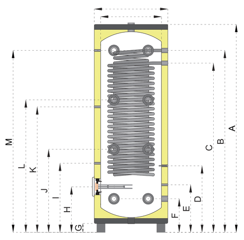 FONTOS. A hőcserélővel rendelkező melegvíz tartályok esetében megkülönböztetünk egy névleges űrtartalom-kategóriát, mely egy, a tájékozódást szolgáló kerekített érték, amely jellemzően megjelenik a termék nevében is. Ezen túl használjuk az úgynevezett bruttó űrtartalmat, mely a tényleges belső tartálytérfogatot takarja, és magában foglalja a tartályban lévő hőcserélőt és annak belső űrtartalmát is. Valamint az úgynevezett nettó űrtartalmat, amely nem tartalmazza a hőcserélőt vagy annak űrtartalmát sem, és a hasznos használati melegvíz űrtartalmat jelöli, mely érték jellemzően feltüntetésre kerül az energia címkén is. (A hőcserélő nélküli tartályok esetében az utóbbi két adat, a bruttó és nettó űrtartalom megegyezik egymással.)